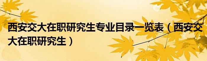 关于西安交大在职研究生专业目录一览表,西安交大在职研究生这个很多人还不知道,今天菲菲来为大家解答以上的问题,现在让我们一起来看看吧!