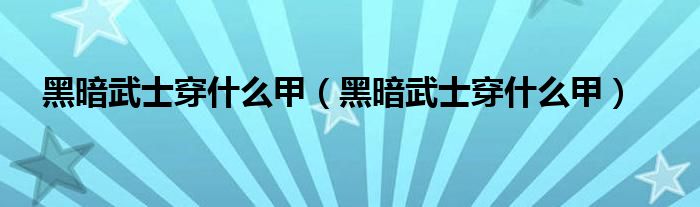 黑暗武士穿什么甲(黑暗武士穿什么甲)