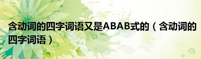 大家好,小晋来为大家解答以下问题,关于含动词的四字词语又是ABAB式的,含动词的四字词语很多人还不知道,今天让我们一起来看看吧!