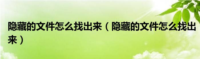 大家好,慧慧来为大家解答以上问题,隐藏的文件怎么找出来,隐藏的文件怎么找出来很多人还不知道,现在让我们一起来看看吧!