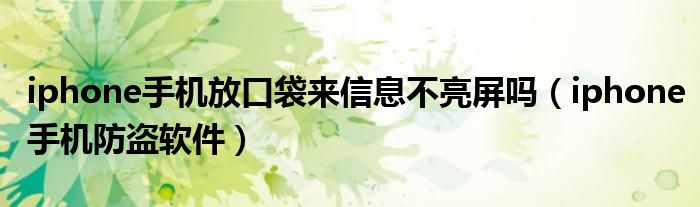 大家好,慧慧来为大家解答以上问题,iphone手机放口袋来信息不亮屏吗,iphone手机防盗软件很多人还不知道,现在让我们一起来看看吧!