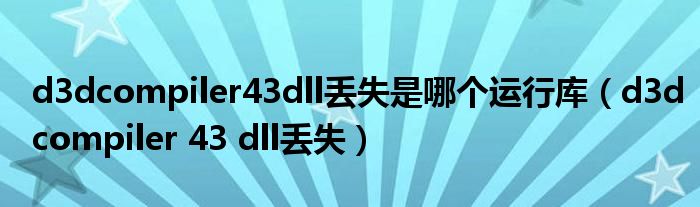 大家好,慧慧来为大家解答以上问题,d3dcompiler43dll丢失是哪个运行库,d3dcompiler 43 dll丢失很多人还不知道,现在让我们一起来看看吧!