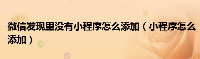微信发现里没有小程序怎么添加(小程序怎么添加)