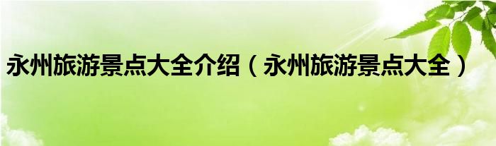 关于永州旅游景点大全介绍,永州旅游景点大全这个很多人还不知道,今天菲菲来为大家解答以上的问题,现在让我们一起来看看吧!