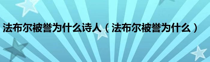 大家好,小晋来为大家解答以下问题,关于法布尔被誉为什么诗人,法布尔被誉为什么很多人还不知道,今天让我们一起来看看吧!
