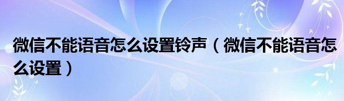 大家好,小晋来为大家解答以下问题,关于微信不能语音怎么设置铃声,微信不能语音怎么设置很多人还不知道,今天让我们一起来看看吧!