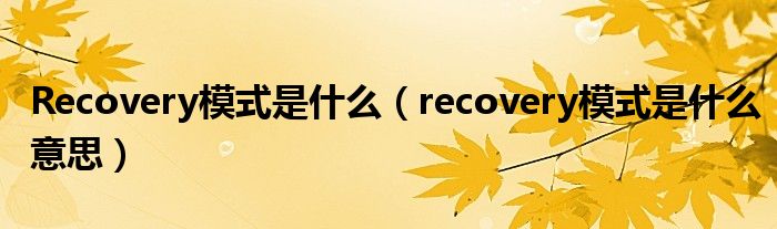 关于Recovery模式是什么,recovery模式是什么意思这个很多人还不知道,今天菲菲来为大家解答以上的问题,现在让我们一起来看看吧!