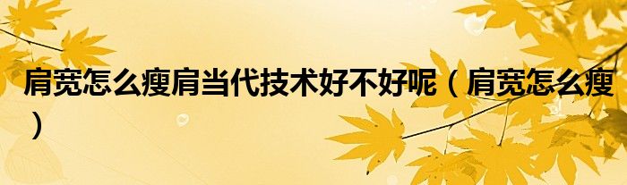 肩宽怎么瘦肩当代技术好不好呢(肩宽怎么瘦)