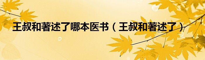 最佳答案大家好,小晋来为大家解答以下问题,关于王叔和著述了哪本医书,王叔和著述了很多人还不知道,今天让我们一起来看看吧!1、王叔和,一位古代医生的名字。金医学家。Xi,字行,高平(今山东)人。生于东汉建安十五年,即公元210年。他学识渊博,为人正直,做出了当时的圣旨。在中医发展史上,他有两个...