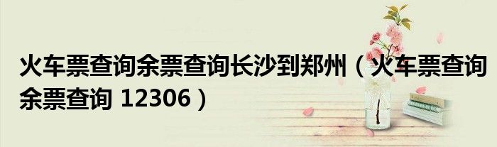 大家好,来宝来为大家解答以下问题,火车票查询余票查询长沙到郑州,火车票查询余票查询 12306很多人还不知道,今天让我们一起来看看吧!