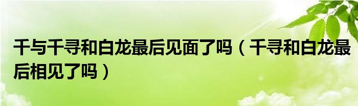 大家好,小晋来为大家解答以下问题,关于千与千寻和白龙最后见面了吗,千寻和白龙最后相见了吗很多人还不知道,今天让我们一起来看看吧!