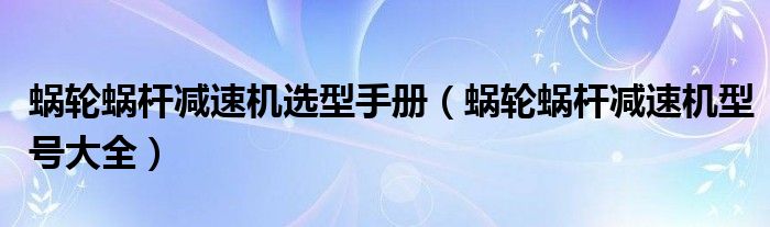 最佳答案关于蜗轮蜗杆减速机选型手册,蜗轮蜗杆减速机型号大全这个很多人还不知道,今天菲菲来为大家解答以上的问题,现在让我们一起来看看吧!1、蜗轮蜗杆减速机主要型号:WP系列蜗轮蜗杆减速机、WH系列蜗轮蜗杆减速机和CW系列蜗轮蜗杆减速机等WP系列:包括WPA/WPS/WPW/WPE/WPZ/WPD。2、WH系列:包括WHT/WH...