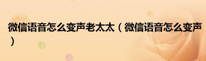 大家好,小晋来为大家解答以下问题,关于微信语音怎么变声老太太,微信语音怎么变声很多人还不知道,今天让我们一起来看看吧!