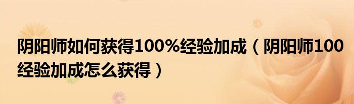 阴阳师如何获得100%经验加成(阴阳师100经验加成怎么获得)