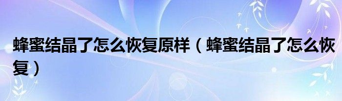 关于蜂蜜结晶了怎么恢复原样,蜂蜜结晶了怎么恢复这个很多人还不知道,今天菲菲来为大家解答以上的问题,现在让我们一起来看看吧!