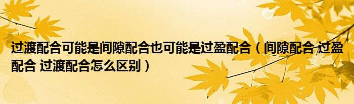 过渡配合可能是间隙配合也可能是过盈配合(间隙配合过盈配合过渡配合怎么区别)