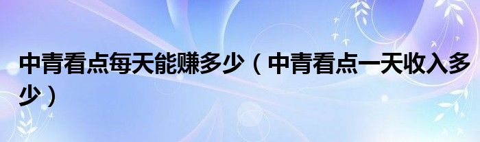 大家好,小晋来为大家解答以下问题,关于中青看点每天能赚多少,中青看点一天收入多少很多人还不知道,今天让我们一起来看看吧!