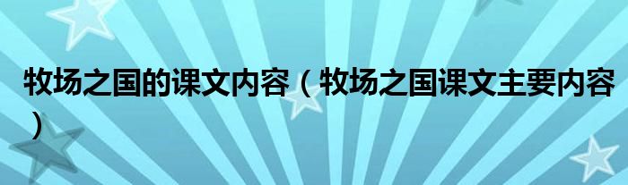 关于牧场之国的课文内容,牧场之国课文主要内容这个很多人还不知道,今天菲菲来为大家解答以上的问题,现在让我们一起来看看吧!