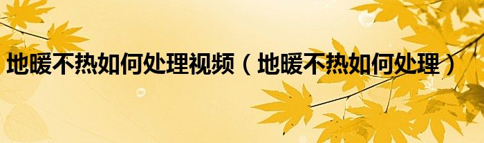 大家好,来宝来为大家解答以下问题,地暖不热如何处理视频,地暖不热如何处理很多人还不知道,今天让我们一起来看看吧!