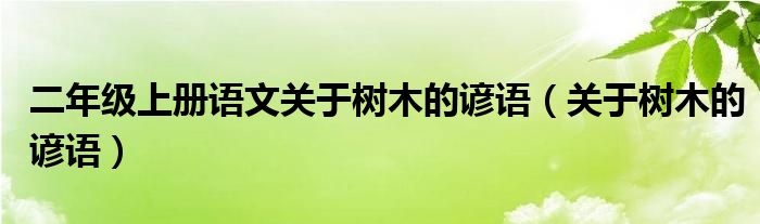 大家好,小晋来为大家解答以下问题,关于二年级上册语文关于树木的谚语,关于树木的谚语很多人还不知道,今天让我们一起来看看吧!