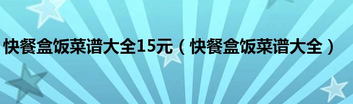 大家好,小晋来为大家解答以下问题,关于快餐盒饭菜谱大全15元,快餐盒饭菜谱大全很多人还不知道,今天让我们一起来看看吧!