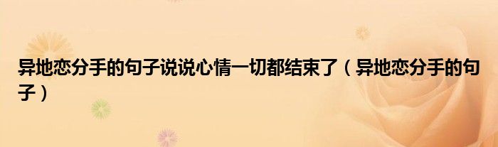 大家好,小晋来为大家解答以下问题,关于异地恋分手的句子说说心情一切都结束了,异地恋分手的句子很多人还不知道,今天让我们一起来看看吧!