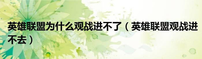 关于英雄联盟为什么观战进不了,英雄联盟观战进不去这个很多人还不知道,今天菲菲来为大家解答以上的问题,现在让我们一起来看看吧!
