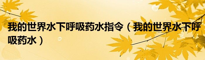 关于我的世界水下呼吸药水指令,我的世界水下呼吸药水这个很多人还不知道,今天菲菲来为大家解答以上的问题,现在让我们一起来看看吧!