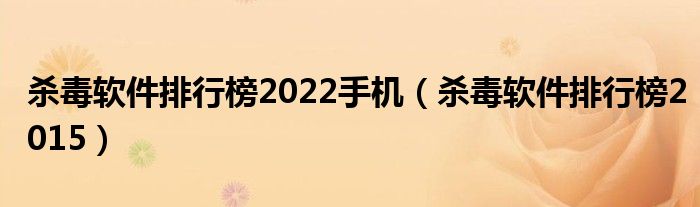 杀毒软件排行榜2022手机(杀毒软件排行榜2015)
