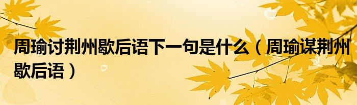 周瑜讨荆州歇后语下一句是什么(周瑜谋荆州歇后语)