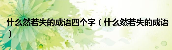 大家好,小晋来为大家解答以下问题,关于什么然若失的成语四个字,什么然若失的成语很多人还不知道,今天让我们一起来看看吧!