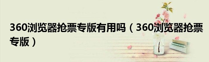 360浏览器抢票专版有用吗(360浏览器抢票专版)