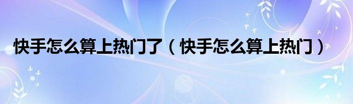 大家好,小晋来为大家解答以下问题,关于快手怎么算上热门了,快手怎么算上热门很多人还不知道,今天让我们一起来看看吧!