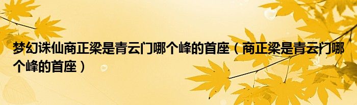 关于梦幻诛仙商正梁是青云门哪个峰的首座,商正梁是青云门哪个峰的首座这个很多人还不知道,今天菲菲来为大家解答以上的问题,现在让我们一起来看看吧!