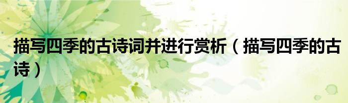 关于描写四季的古诗词并进行赏析,描写四季的古诗这个很多人还不知道,今天菲菲来为大家解答以上的问题,现在让我们一起来看看吧!