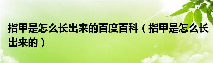 关于指甲是怎么长出来的百度百科,指甲是怎么长出来的这个很多人还不知道,今天菲菲来为大家解答以上的问题,现在让我们一起来看看吧!