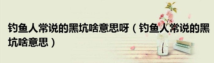 钓鱼人常说的黑坑啥意思呀(钓鱼人常说的黑坑啥意思)