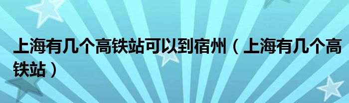 关于上海有几个高铁站可以到宿州,上海有几个高铁站这个很多人还不知道,今天菲菲来为大家解答以上的问题,现在让我们一起来看看吧!