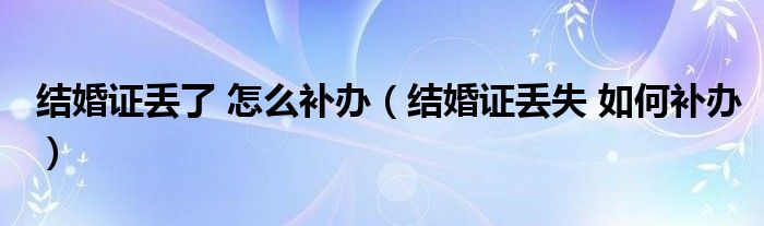 关于结婚证丢了 怎么补办,结婚证丢失 如何补办这个很多人还不知道,今天菲菲来为大家解答以上的问题,现在让我们一起来看看吧!