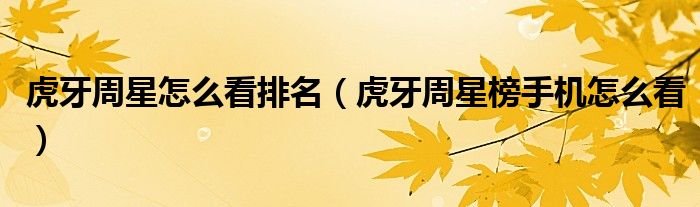大家好,小晋来为大家解答以下问题,关于虎牙周星怎么看排名,虎牙周星榜手机怎么看很多人还不知道,今天让我们一起来看看吧!