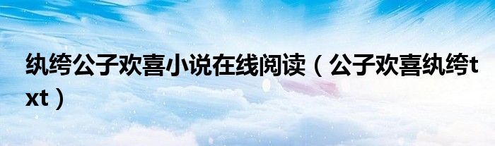 纨绔公子欢喜小说在线阅读(公子欢喜纨绔txt)