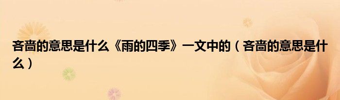 关于吝啬的意思是什么《雨的四季》一文中的,吝啬的意思是什么这个很多人还不知道,今天菲菲来为大家解答以上的问题,现在让我们一起来看看吧!