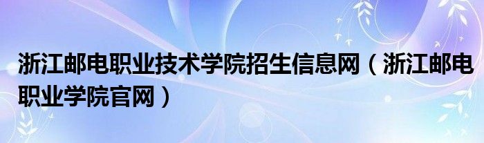 浙江邮电职业技术学院招生信息网(浙江邮电职业学院官网)