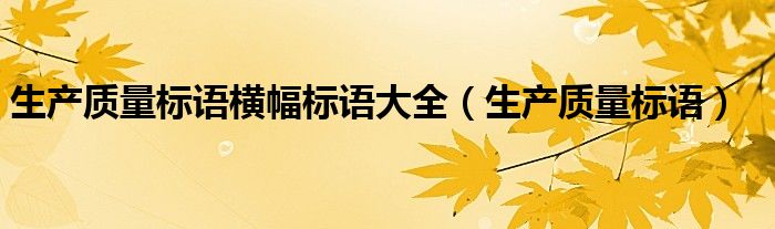 关于生产质量标语横幅标语大全,生产质量标语这个很多人还不知道,今天菲菲来为大家解答以上的问题,现在让我们一起来看看吧!