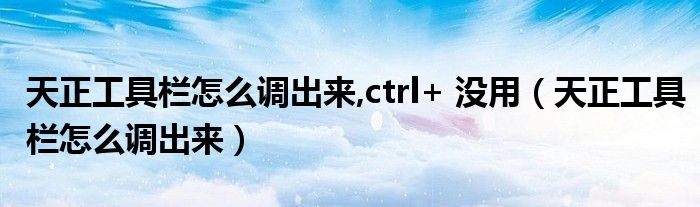 天正工具栏怎么调出来,ctrl+没用(天正工具栏怎么调出来)