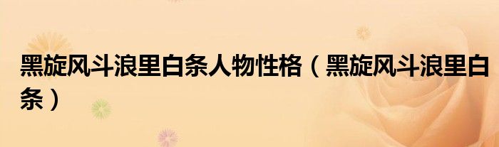 关于黑旋风斗浪里白条人物性格,黑旋风斗浪里白条这个很多人还不知道,今天菲菲来为大家解答以上的问题,现在让我们一起来看看吧!