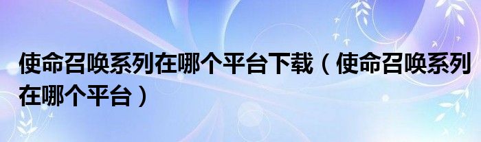 使命召唤系列在哪个平台下载(使命召唤系列在哪个平台)